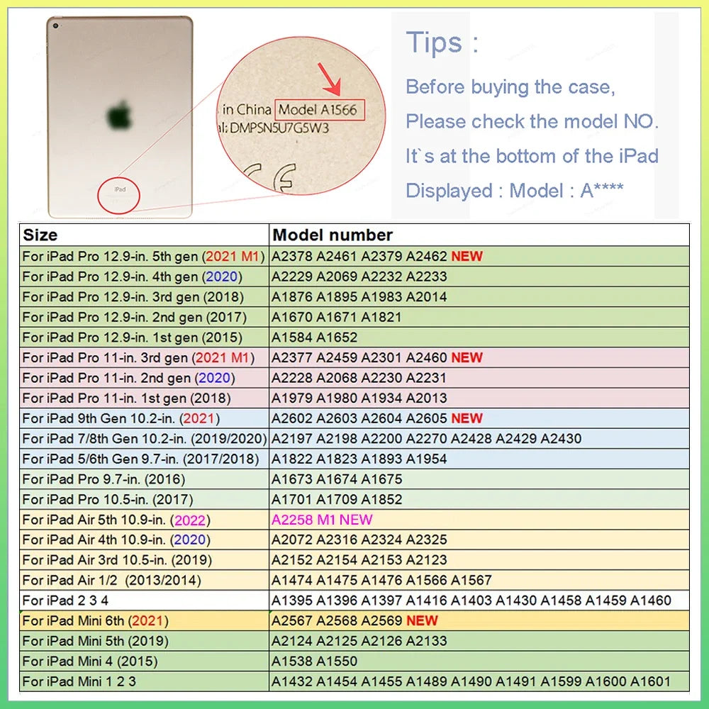Deksel til iPad Pro 11 A16 11th Air 5 4 10.9 10th iPad 10.2 7 8 9th 9.7 5/6th 2017 2018 Air1/2 9.7 Air3 Pro10.5